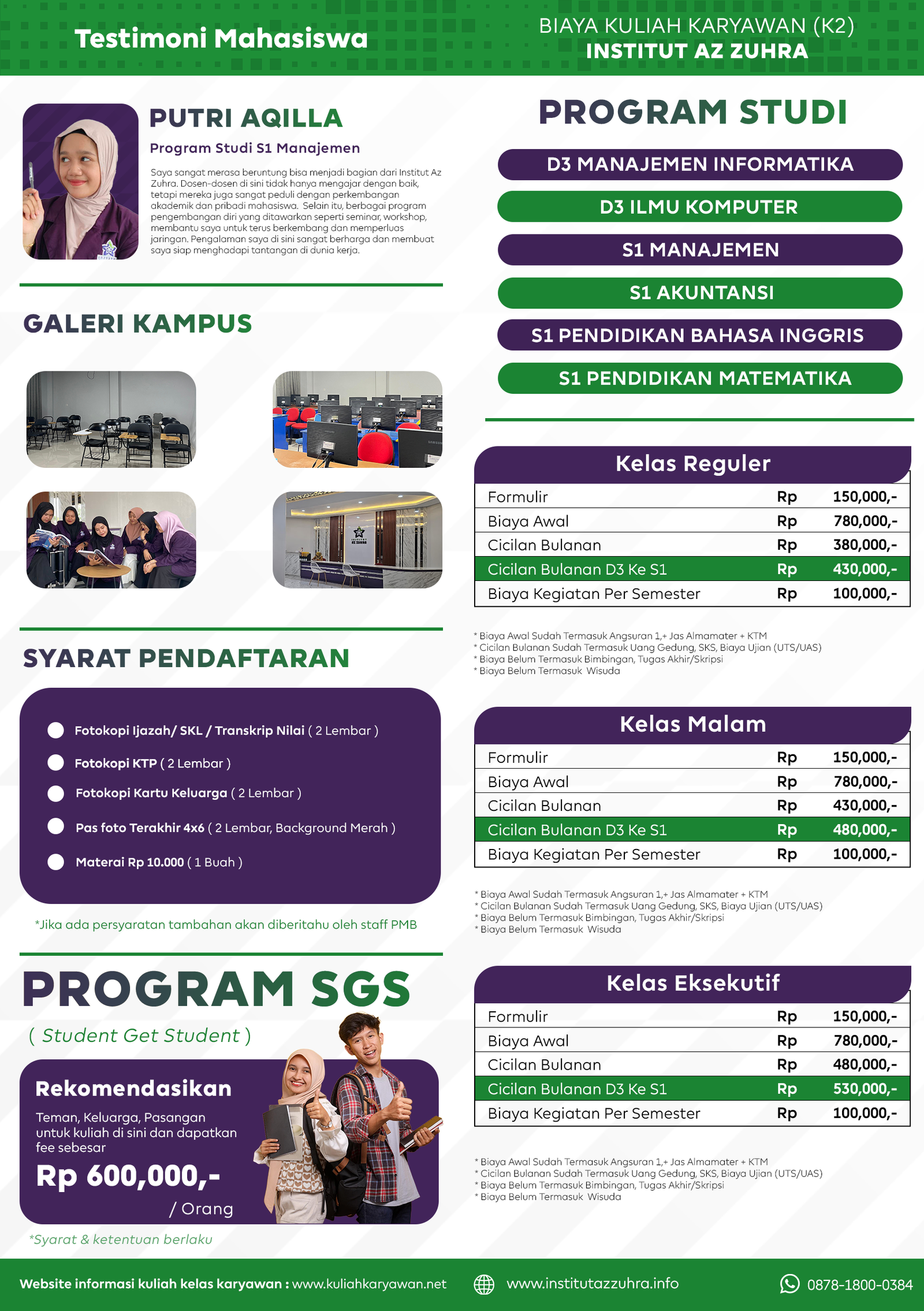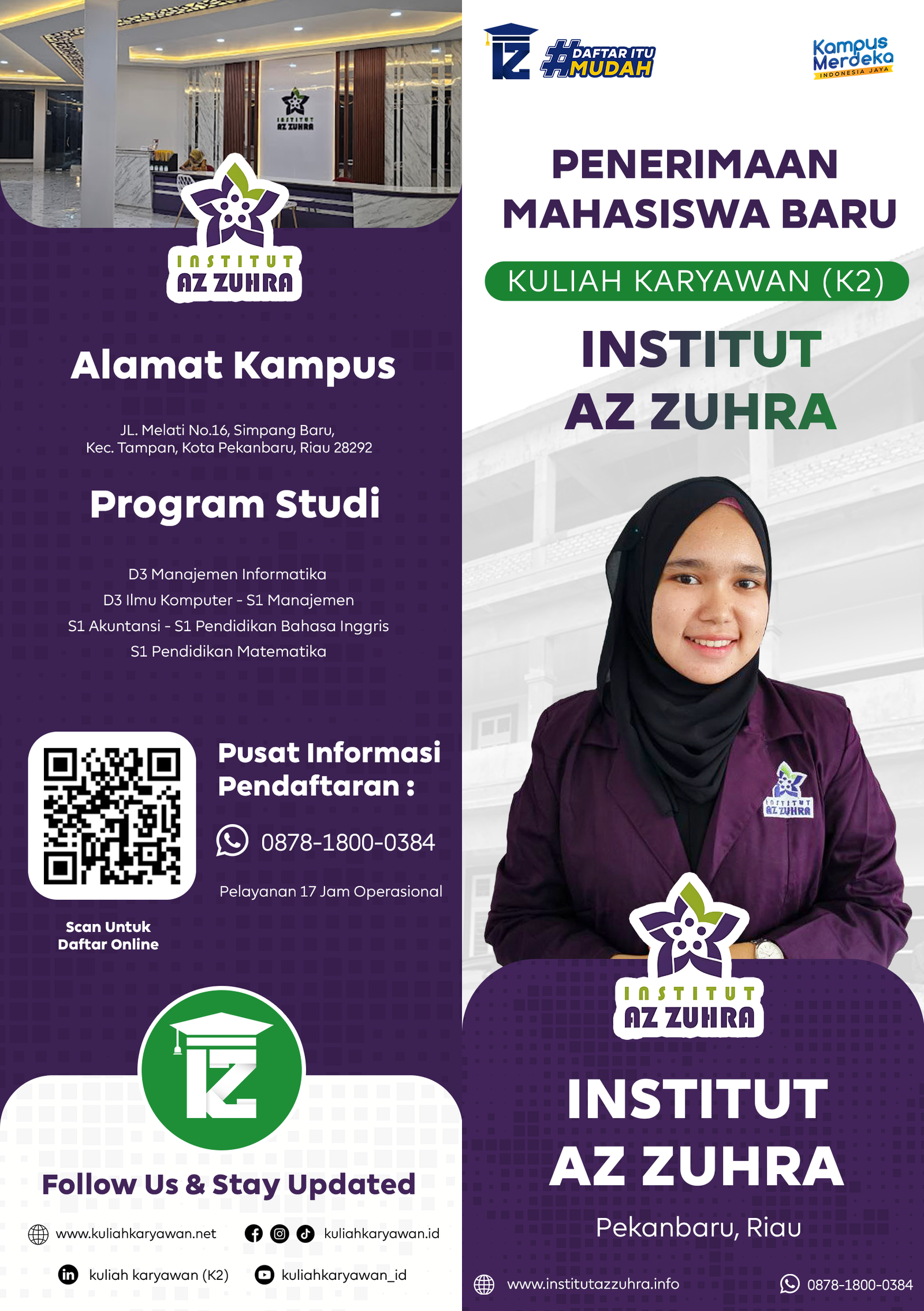 Unduh brosur Institut Az Zuhra untuk menjelajahi program studi, fasilitas, dan layanan terbaik yang siap mendukung perjalanan akademik Anda